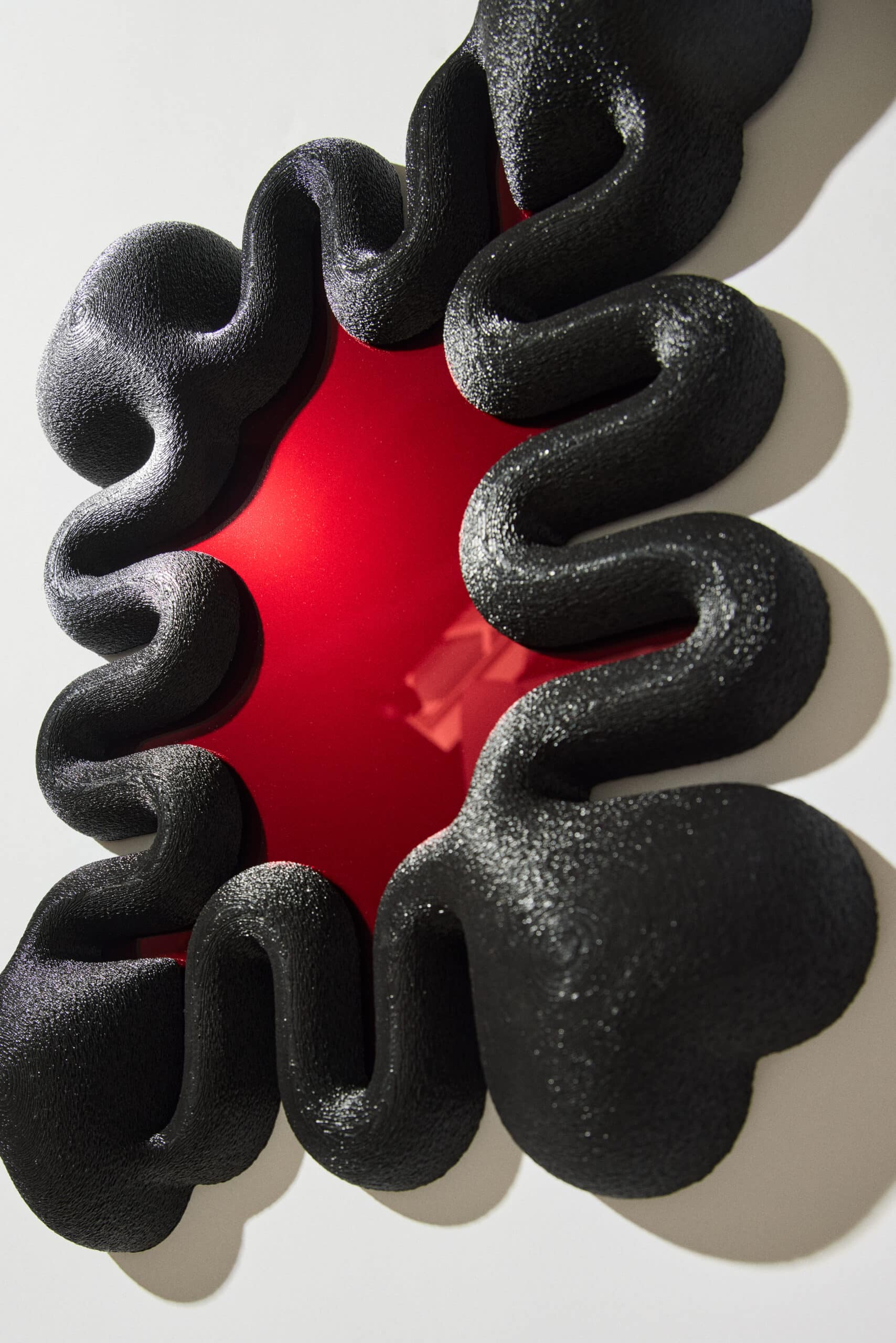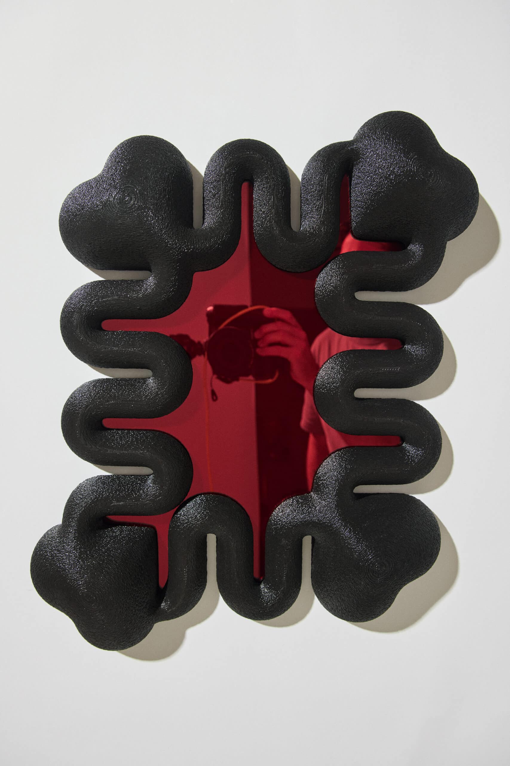 *NUMBER ONE* black frame + red tinted mirrored acrylic inner