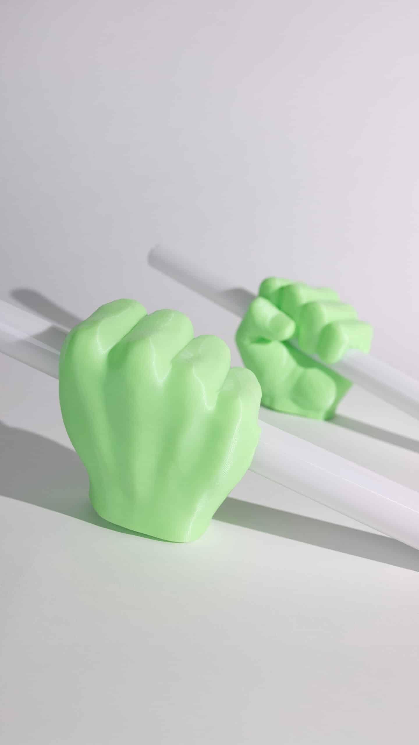 *NUMBER TWO* minty green hands [glow in the dark material] + matching green light tubes [when turned on]