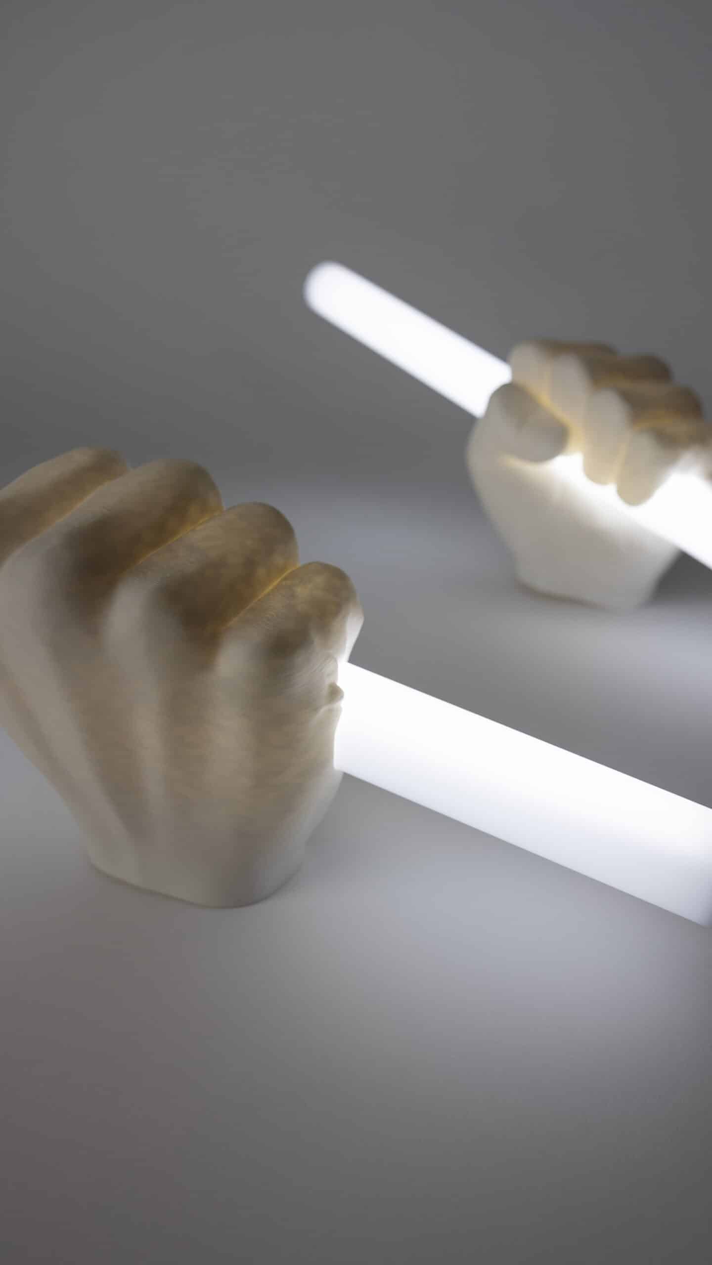 *NUMBER THREE* white hands [when light is turned on, hands look textured + cream in colour] + white light tubes